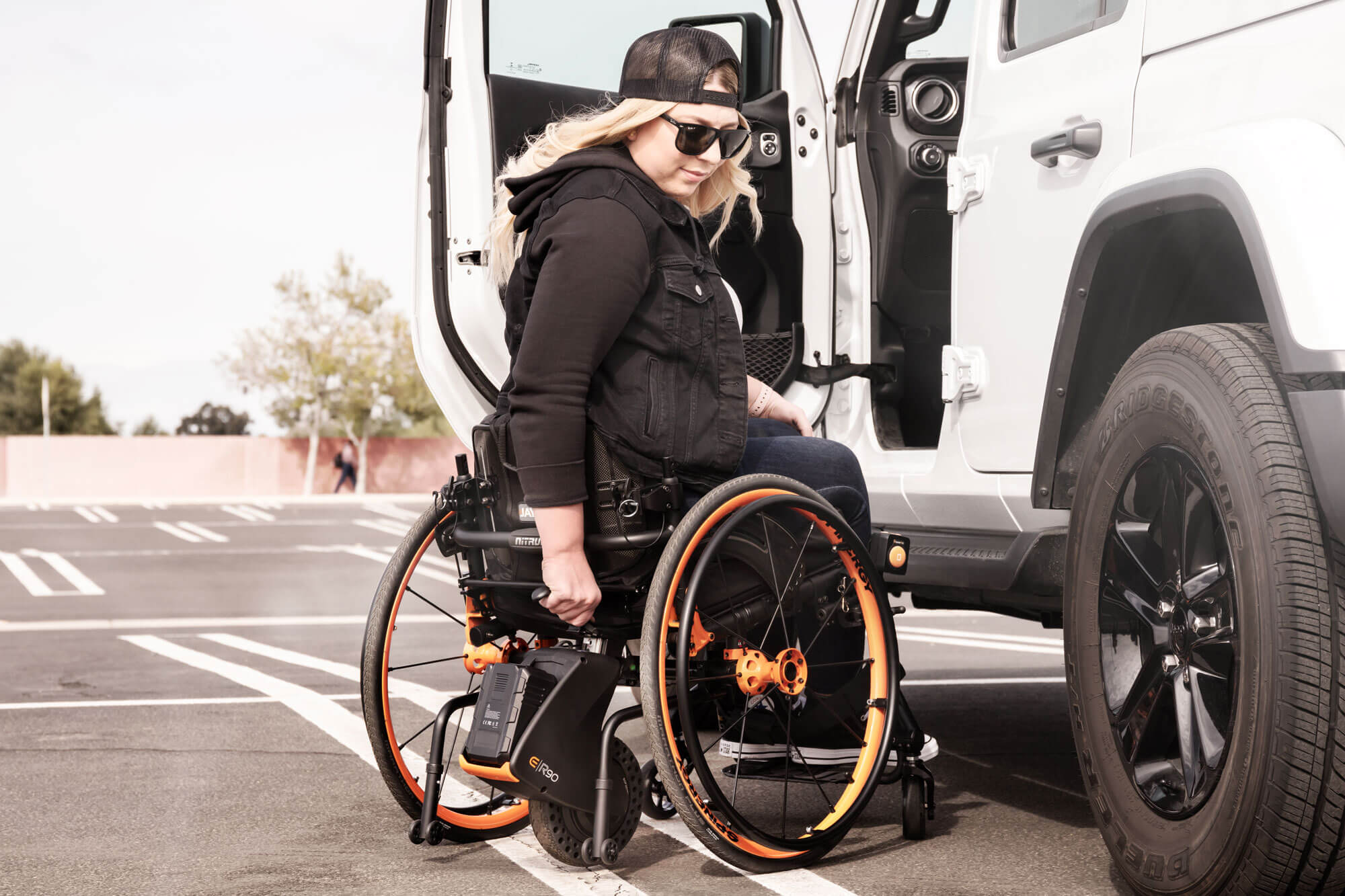 De elektrische hulpaandrijving zit gemonteerd aan de asbuis van de rolstoel. Het maakt niet uit of dit een vastframe of vouwframe rolstoel is, het is allemaal mogelijk! De ontvangstadapter zal niet in de wegzitten bij bijvoorbeeld een vouwframe rolstoel, deze is nog steeds opvouwbaar met de R90.